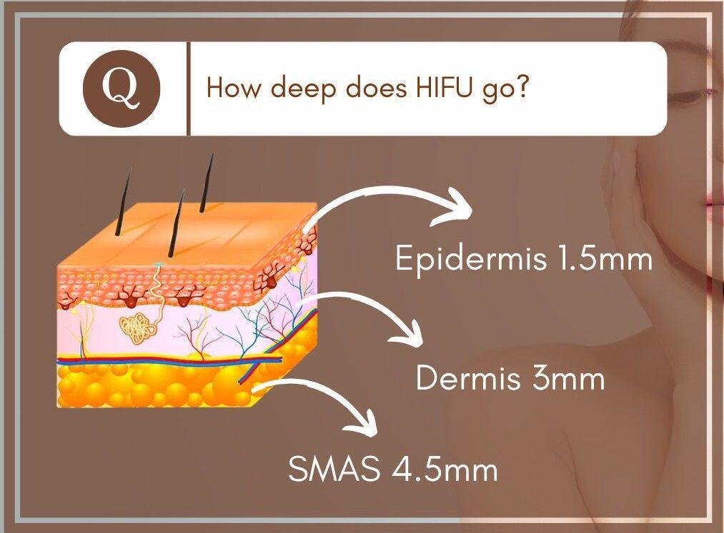 HIFU delivers focused ultrasound energy into precise depths of your skin. This controlled heat kickstarts your body’s natural collagen and elastin production, which are essential for firm, youthful-looking skin. Because it targets the SMAS layer, you’re not just improving the surface – you’re lifting and restructuring from within.
